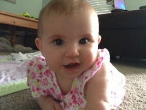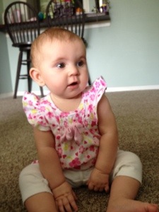 Oh and one last development just this week – our baby girl is cutting her first two teeth! She had a very fussy day last week and I couldn’t figure out what was wrong, until the next morning when I felt a sharp little bump in her bottom gum. Then it all made sense! Poor thing – Mommy’s still learning. Elizabeth will fully train me soon enough.