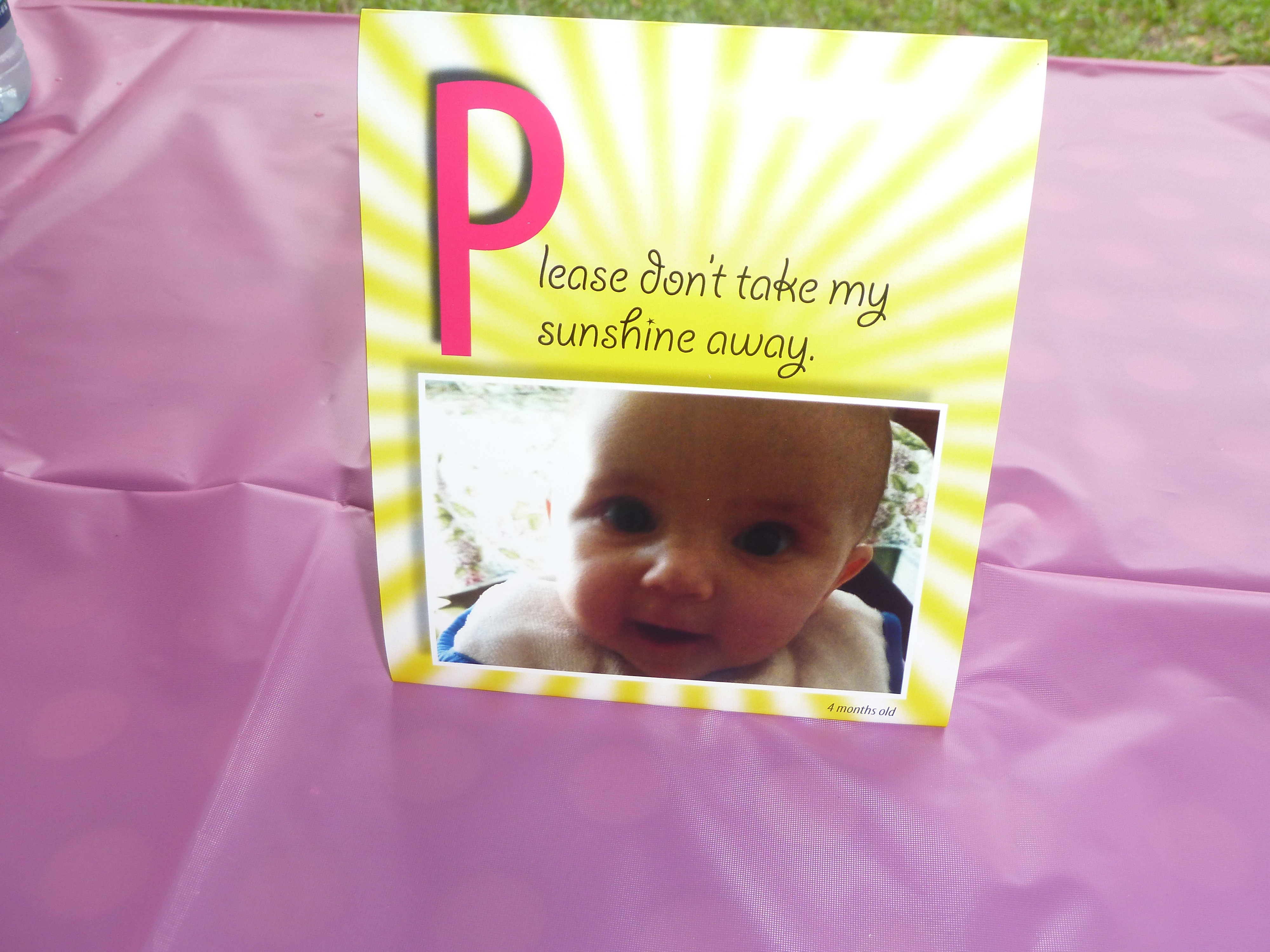 So I think I jinxed the weather for Elizabeth’s 1st birthday party when I chose a “You are my sunshine” theme. February 8th was an overcast, grey day – and at 2 pm , right on cue, it started sprinkling. As they say – we make plans, and God laughs! 🙂