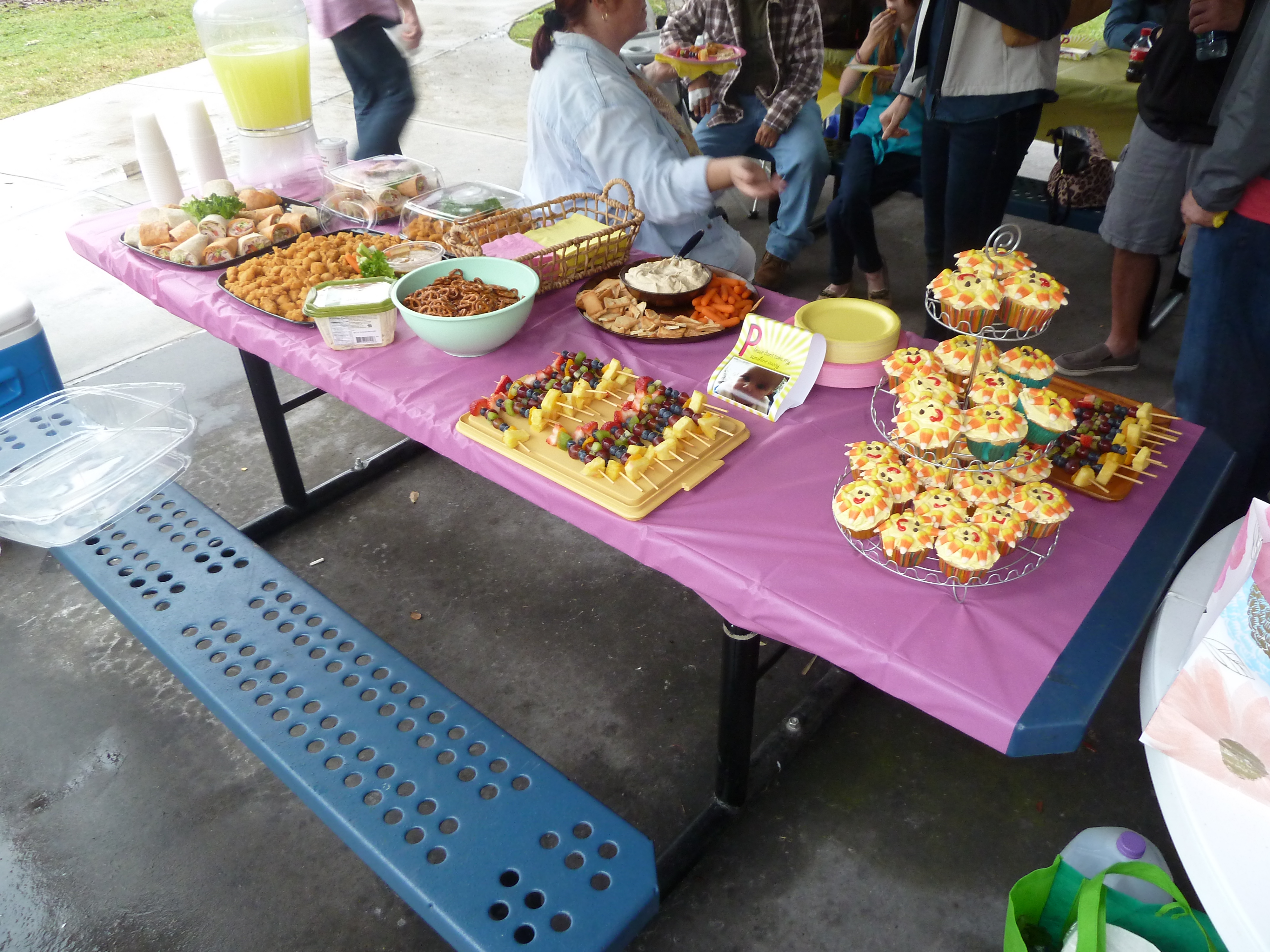 Luckily, we reserved a pavilion at the park for the party, so Elizabeth and all our guests were able to stay dry. And, although the weather didn’t cooperate, we brought our own sunshine – with lots of great friends and family there to share in the celebration. Here are some highlights from the festivities…