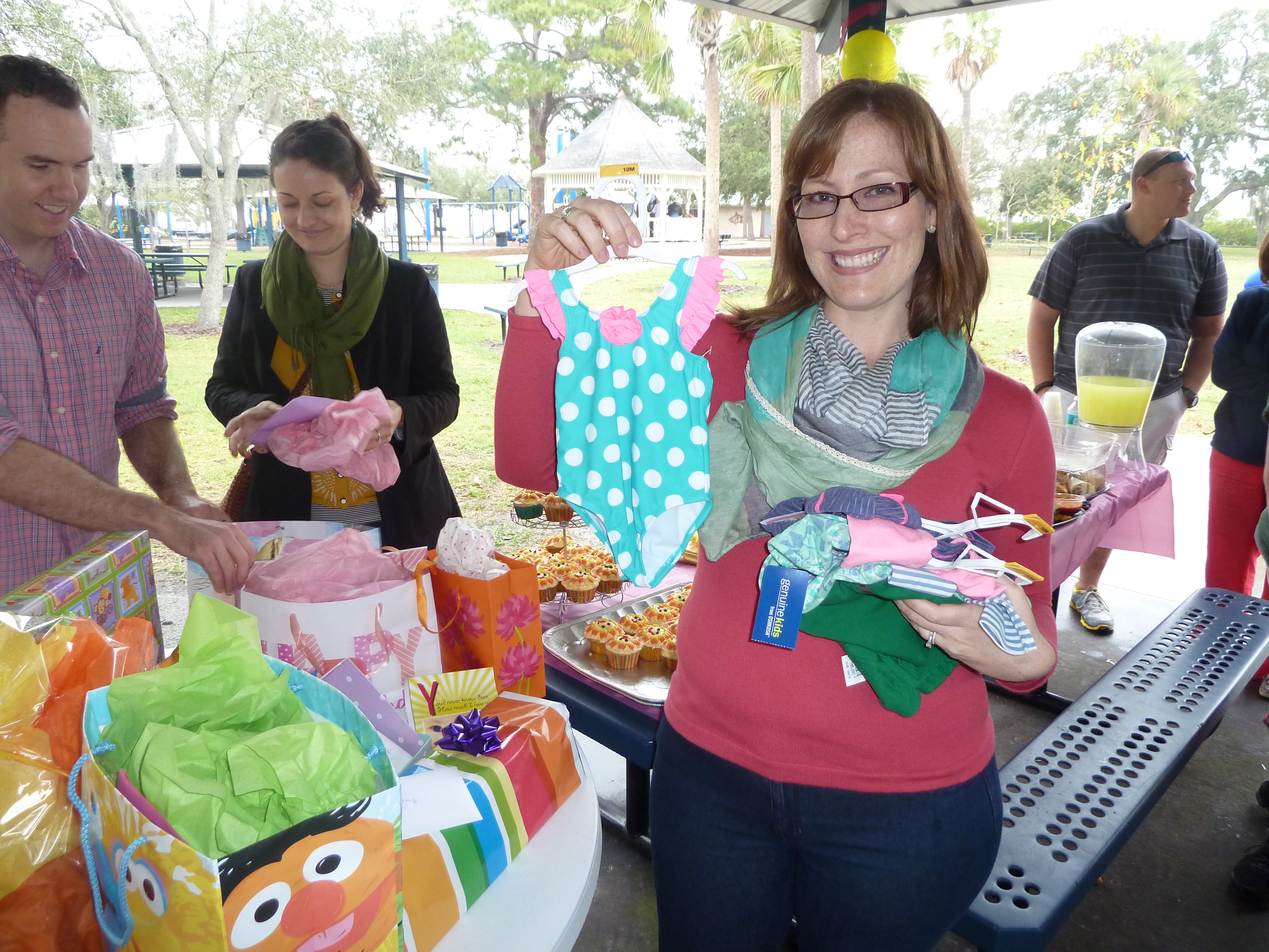 Gran with Lori and TedAunt Sue, Matt and John B. with meMaggie and Rex with Gran and ElDrew, Pops and John B looking very coolLaura and Rhett with Layla – Lizzie’s friendClif and his family showed up just in time for the cake smashing!So excited for our precious baby girlLizzie and me with Auntie Erin MaryPosing with GrampyOur pavilionBIg boy JoeyPhoto break with Clarissa and AlexAllison and IzzyJamie, Dennis and ReeceKristina and meLizzie with her happy hour buddy, Maggie 🙂Brad, mi lami Gina and El – they drove over from Orlando to join in the fun! 🙂Auntie Erin and GramiMaggie and RexMatt and Auntie KerryGran, Aunt Sue and MattYay for a new bathing suit – can’t wait to take Lizzie swimming again!And she’s getting into her presents…Kristina and JeffParty girl!