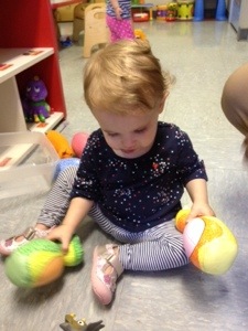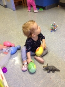 Little by little, she’s been adjusting. Last week I even dropped her off without tears (from her and me). She wasn’t really smiling when I left, but I peeked in the window from outside and the little stinker was already happily playing! I think she knows how to play her Momma – ha!