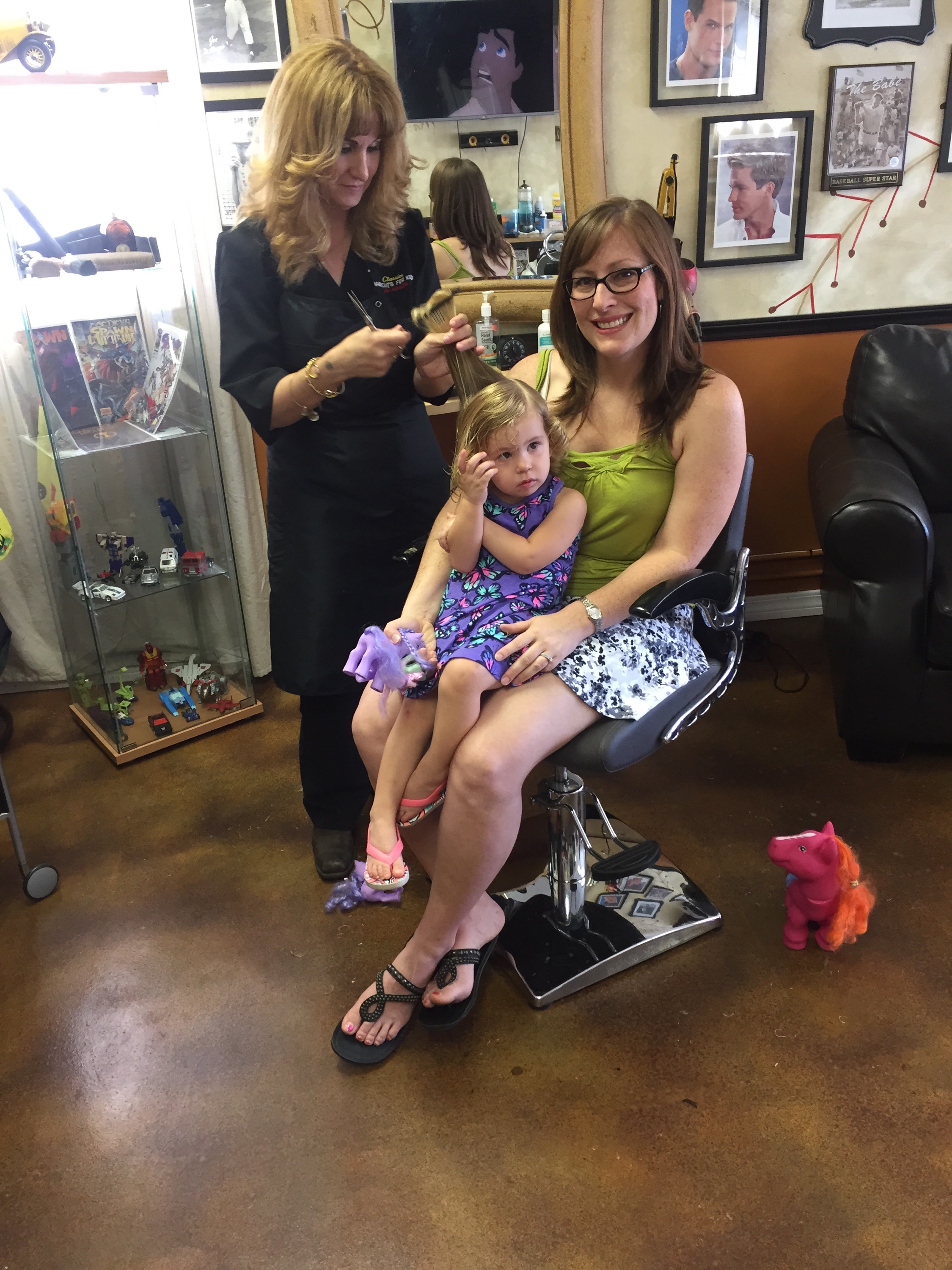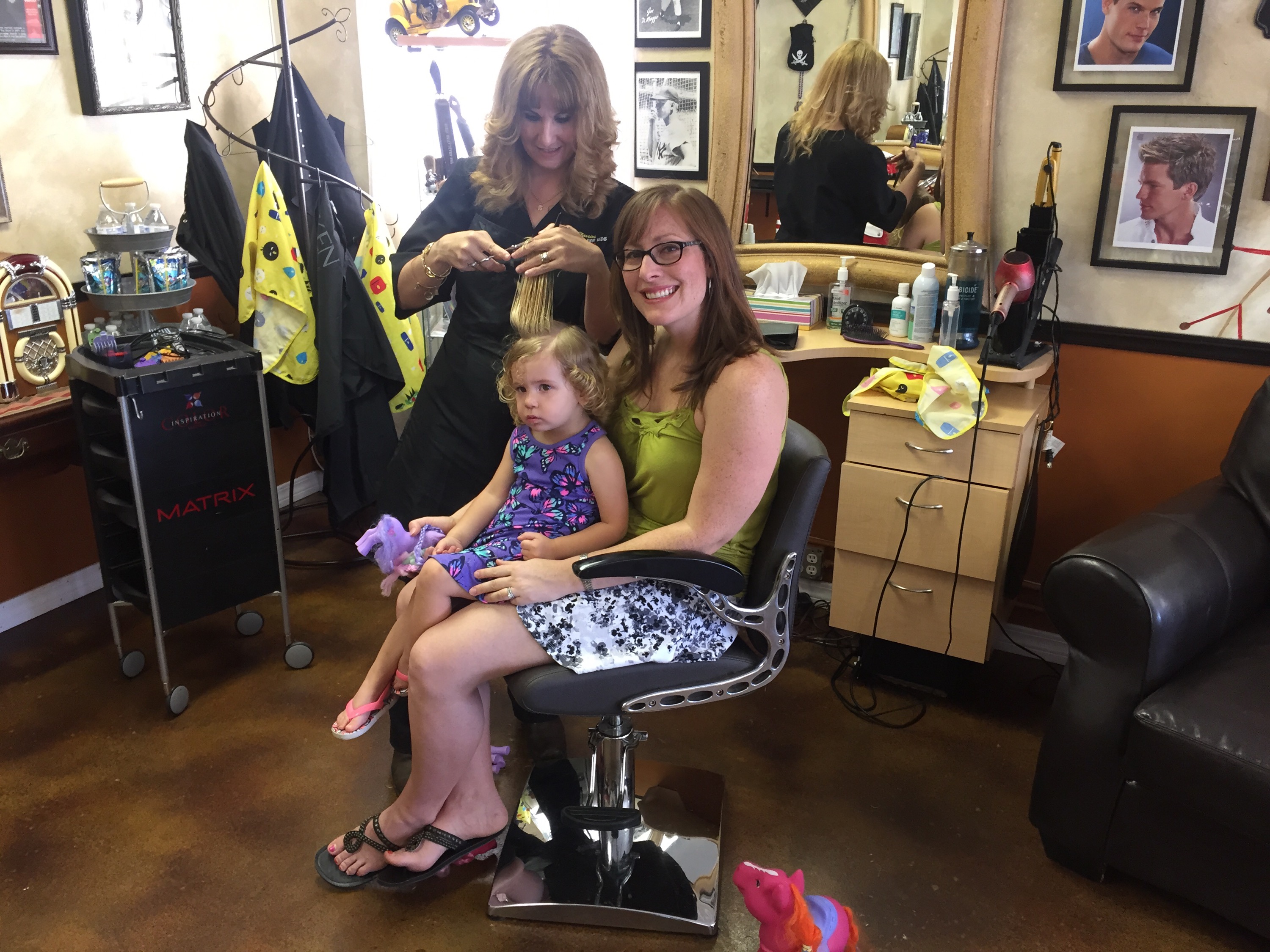 And don’t worry, Gina did not chop off my girl’s golden curls. Just a little trim to get the hair out of her eyes.