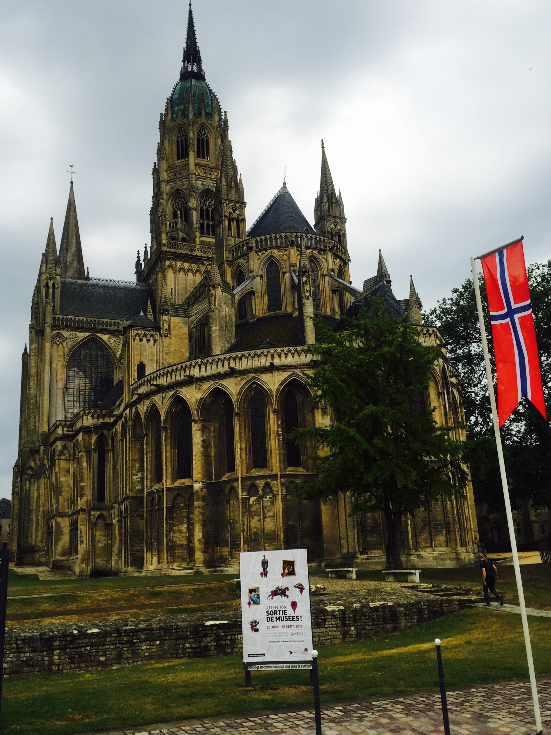 We didn’t really do Bayeux justice – just not enough time in our busy schedule. But I would be remiss if I didn’t mention the famous Bayeux tapestry that’s housed here. The tapestry is around 270 ft long and was embroidered on linen in 1070. It depicts the Norman conquest of England. I didn’t think I would be too impressed by a tapestry, but it’s really a sight to see! They also have a beautiful cathedral here that’s as large as the Notre Dame in Paris. I’ll leave you with a view of this beautiful Norman-Romanesque site built in 1077.