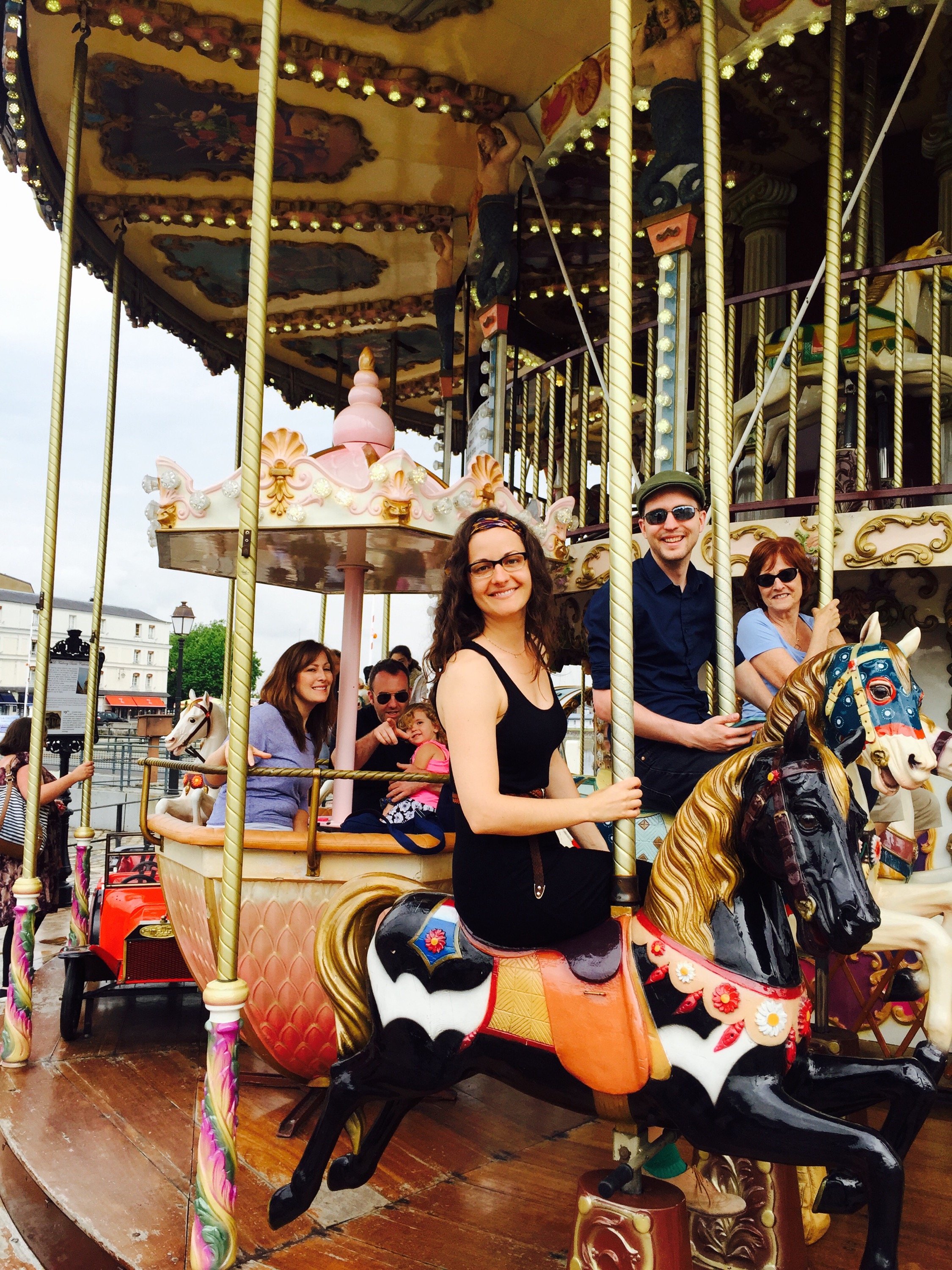 We, of course, started our tour of Honfleur with a ride on the carousel. Lizzie approved of this decision. 😉