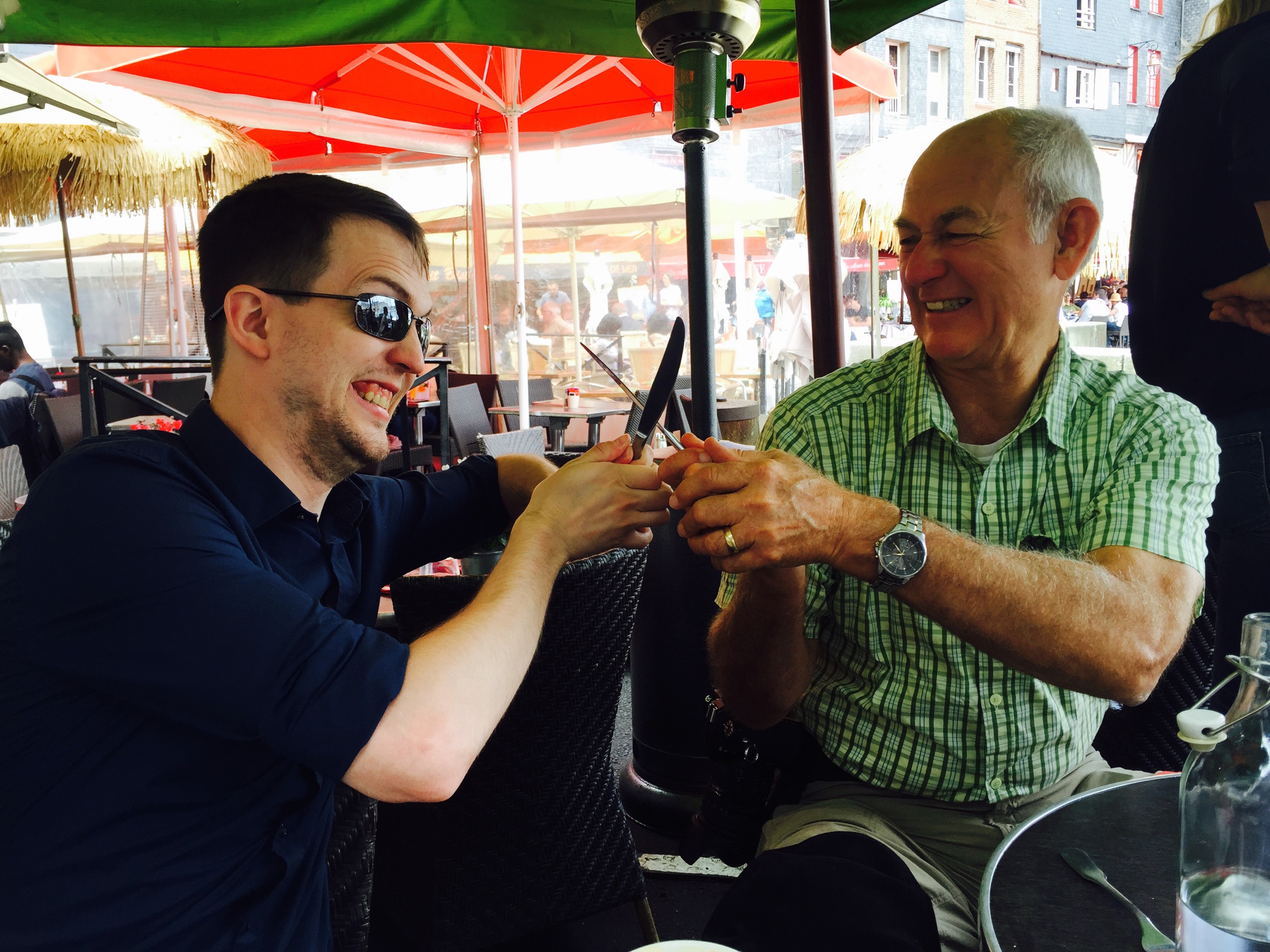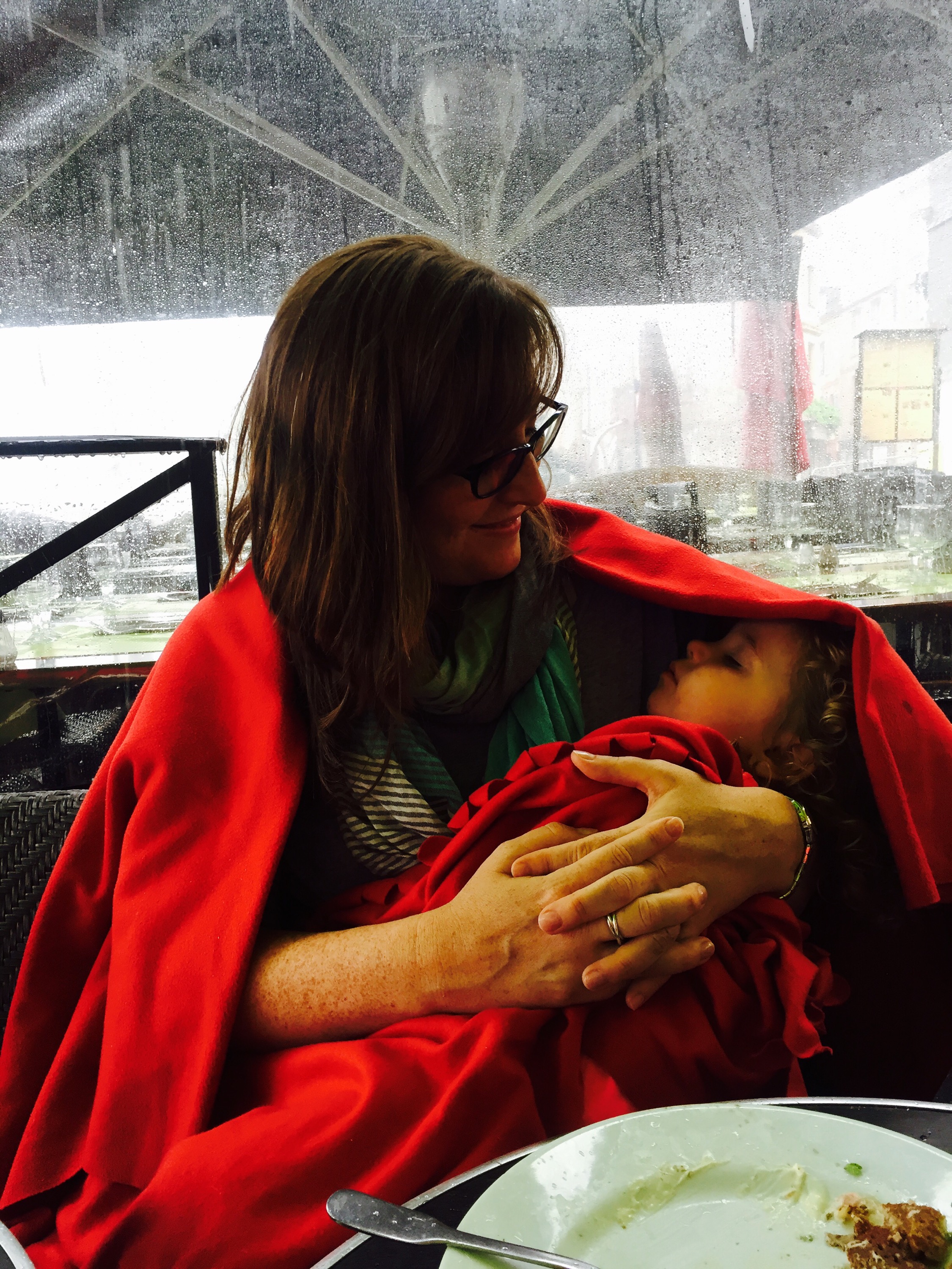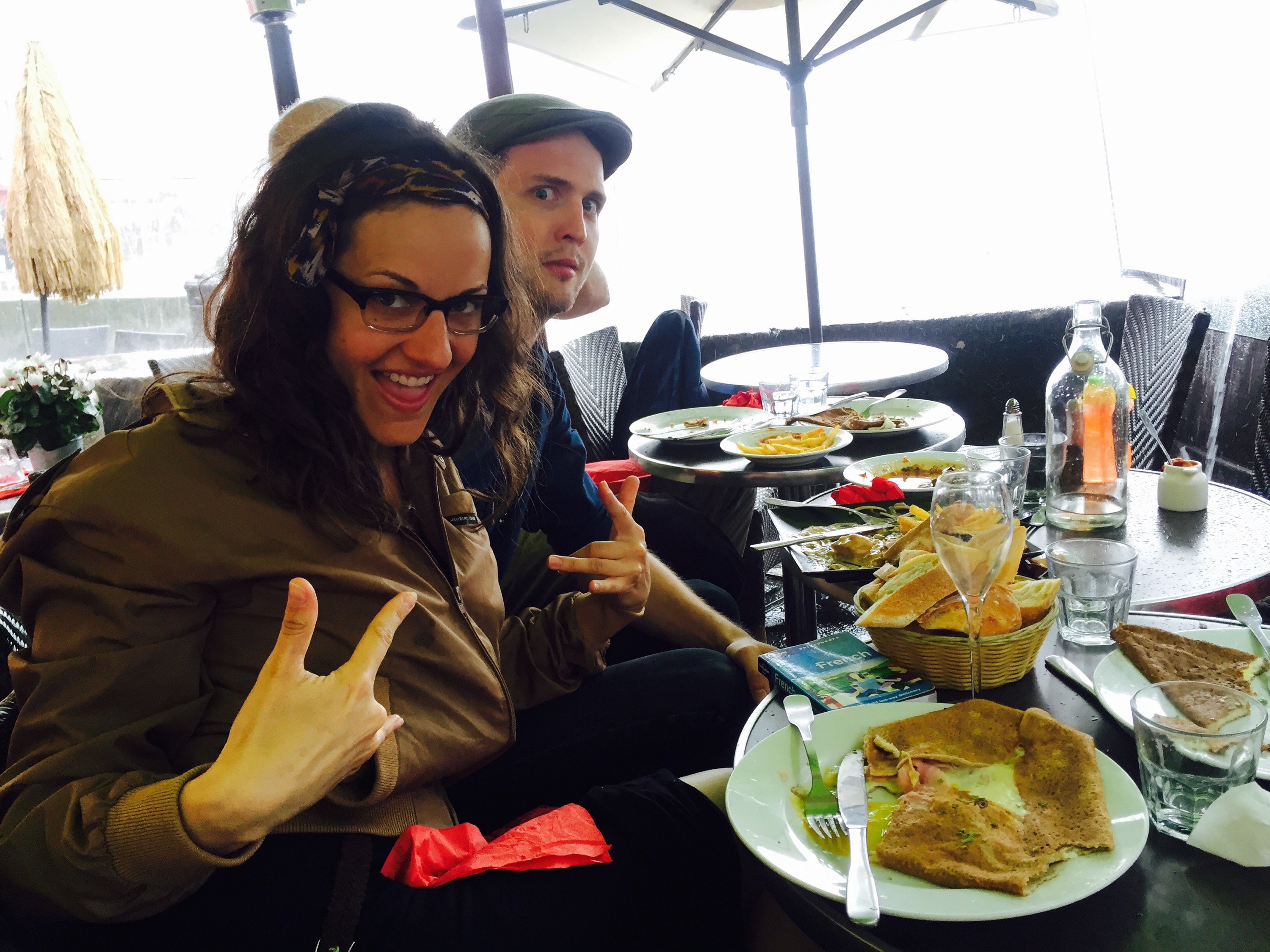 The carousel ride was followed by a walk around the old port and lunch al fresco. Dining outside started out as a great idea until it started pouring! The restaurant supplied blankets to keep us warm, but when the rain didn’t stop, we eventually finished our lunch indoors. Despite the gloomy weather, we enjoyed our last meal of delicious crepes in Normandy!