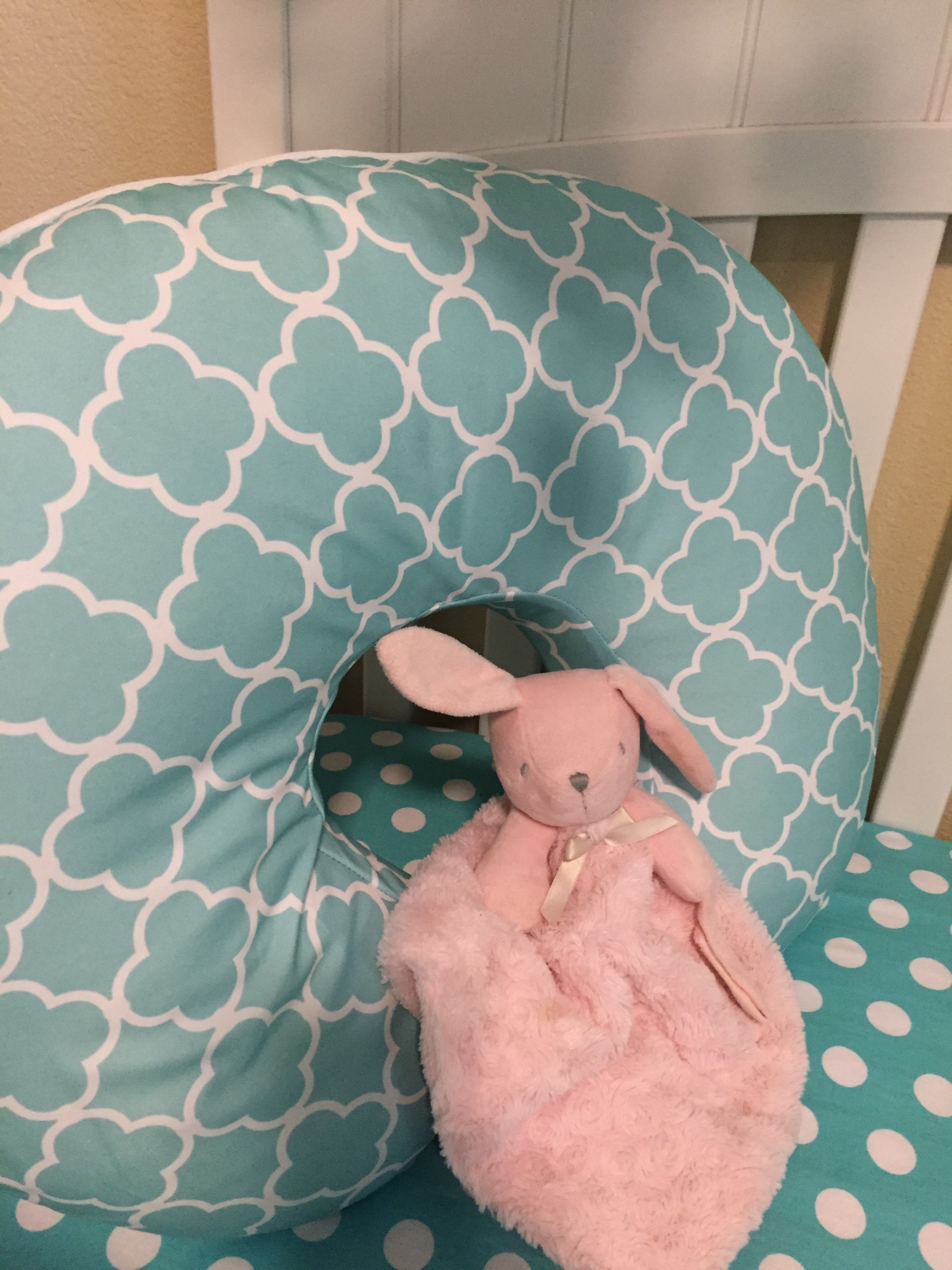 I chose teal and pink because I love that color combination, and there are so many adorable crib bedding options for that color scheme.