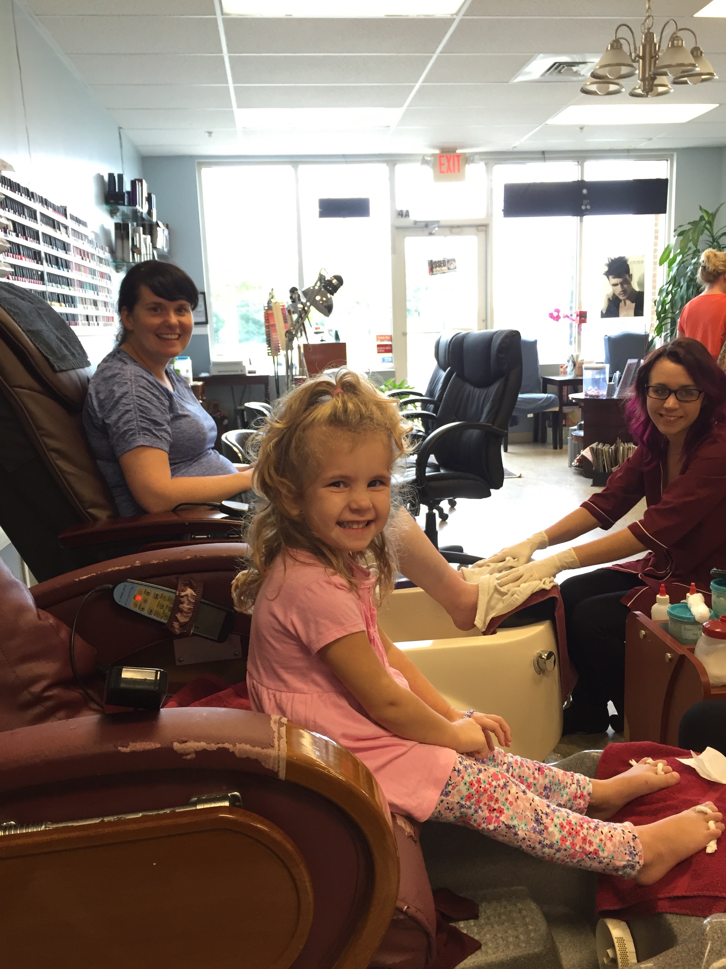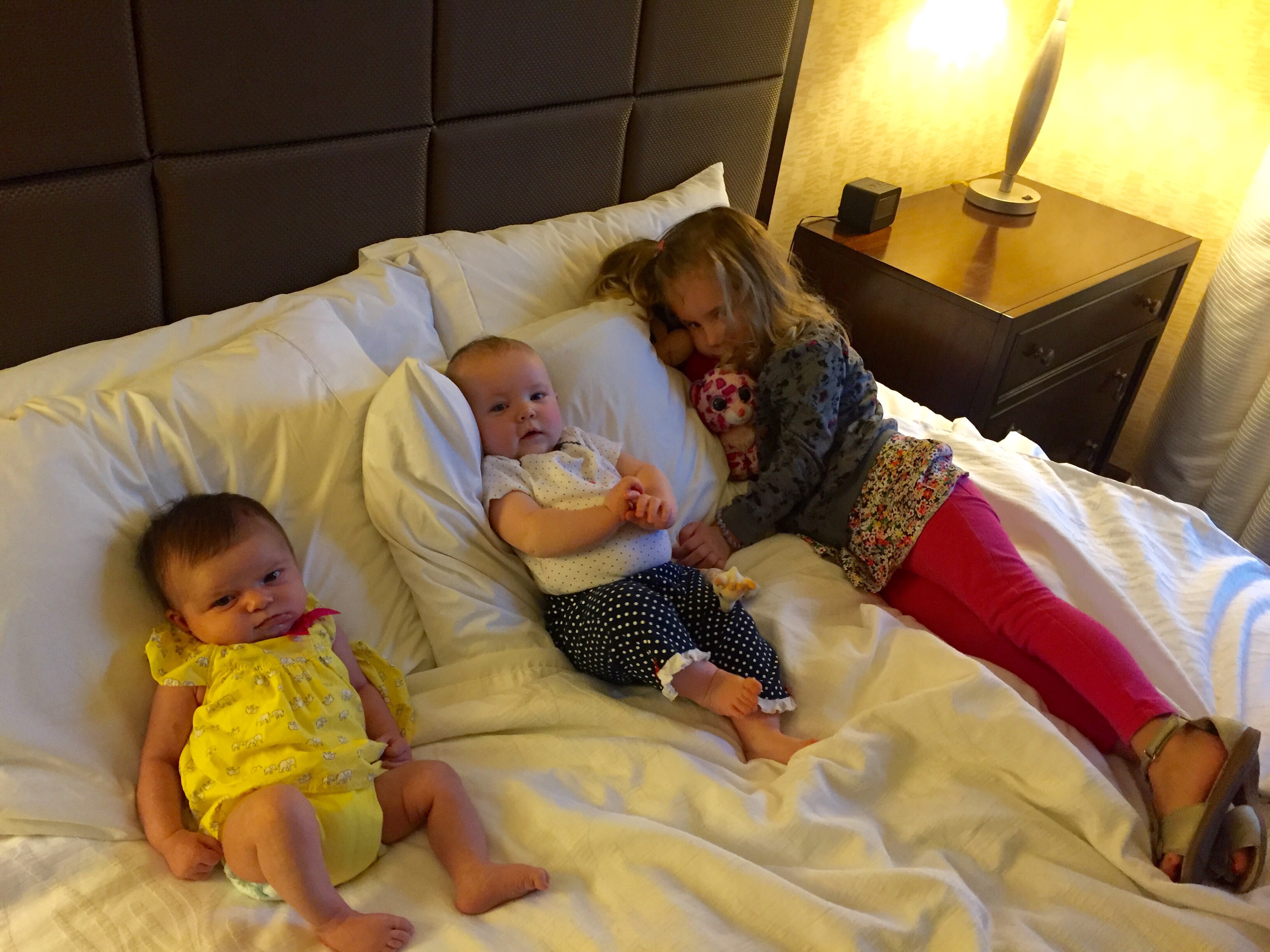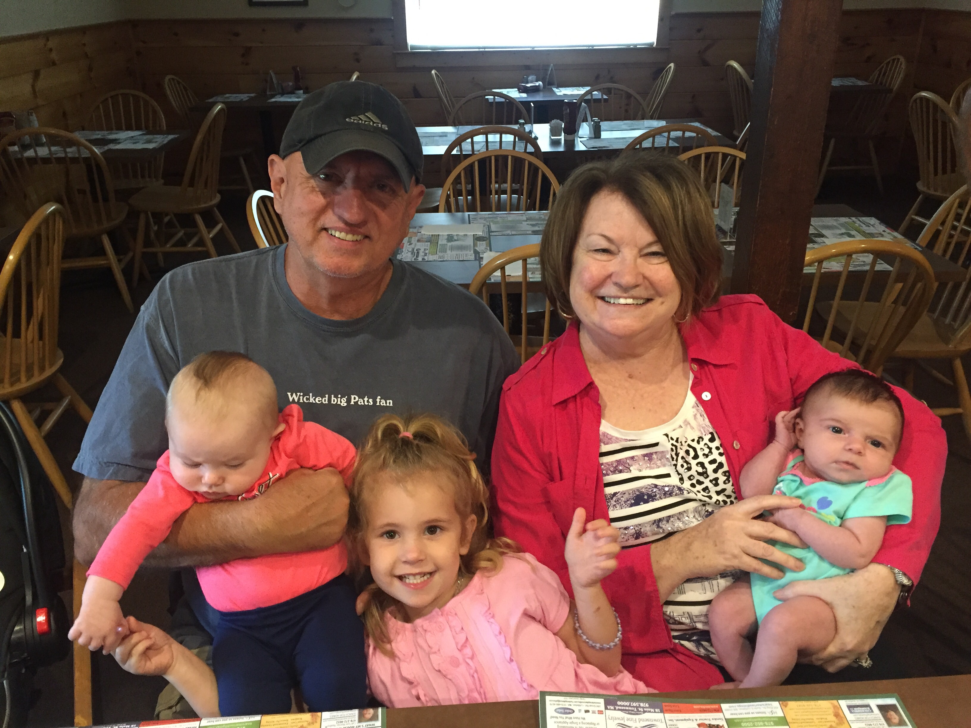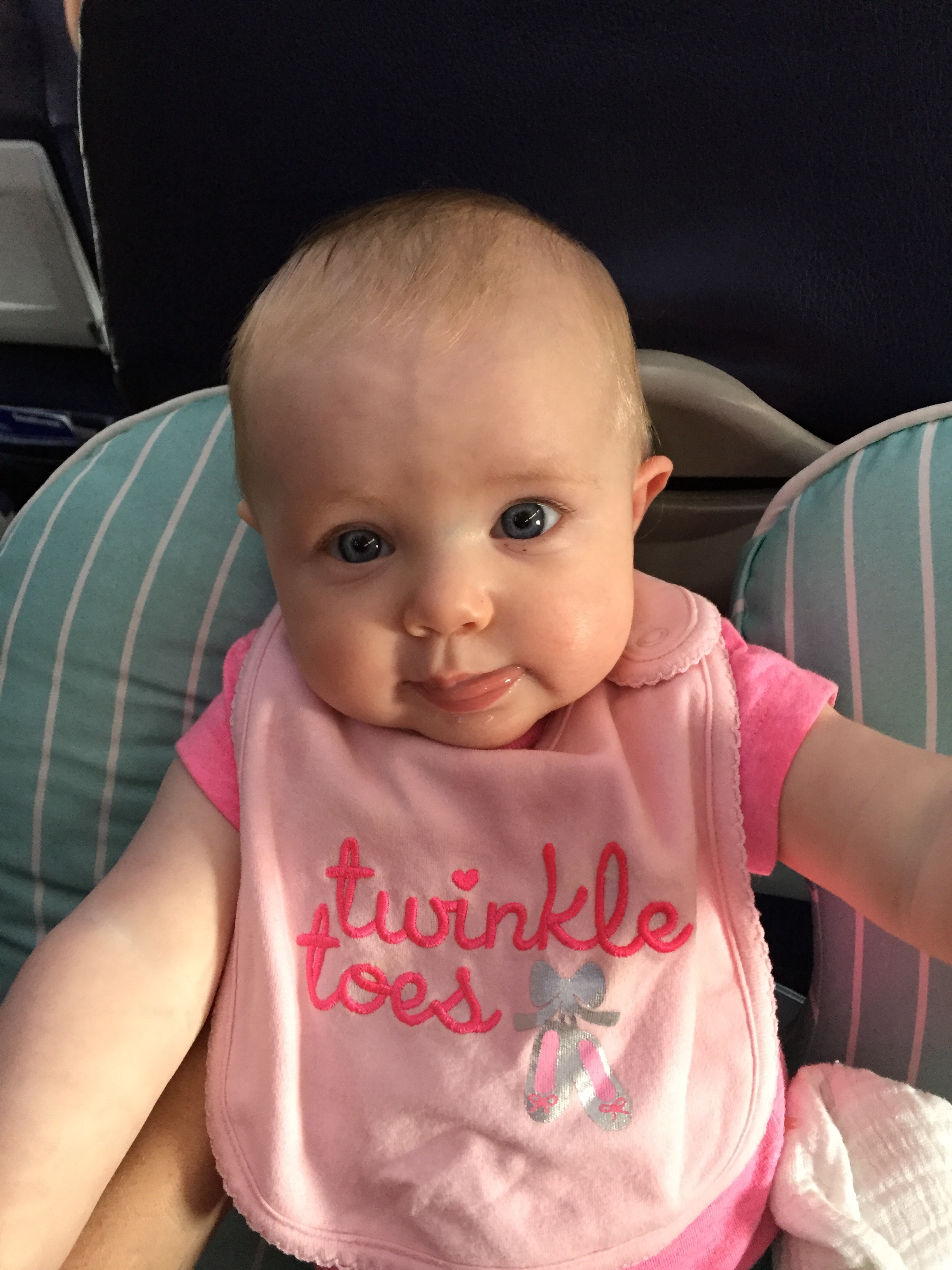 Lizzie and Daddy head to our gate.Charlotte enjoys the view from the Baby Bjorn.All ready for her first flight! She did awesome and slept/ fed most of the 2 1/2 hour flight.Repping Orlando with her Minnie outfit in Mass.Uncle and niece meeting for the first time!Loving on my niece Samantha 🙂On our way to Ayer to see Erin and Scott, we made a stop at Kerry, Scott and Olivia’s house. It’d been way too long since we last saw them!Lizzie, Liv and me – cousin love!We got to meet their adorable pups, Daisy and her baby boy Sawyer. So precious!Charlotte loved meeting Kerry (nice photo bomb, Scott!)Hey cutie pie Sawyer!Sawyer is such a sweet boy!Our beautiful cuz Olivia with Charlotte (the pensive look = a tired girl).Great group shot of the whole bunch, even the pups!Erin, Sam, Carol and Charlotte hanging out at Erin and Scott’s new home in Ayer.Breakfast out with the fam.Carol and Rick with their three grandkids – all girls! 🙂We enjoyed a delicious breakfast at Tiny’s – one of Erin and Scott’s fave breakfast spots in town.Happy 1 month to Samantha!Well look who’s the guest of the day at the Hilton Garden Inn! I feel so special.Lizzie and I took Erin Mary out for a relaxing pedicure.Sweet cousins – they are about 3 1/2 months apart.Can’t wait to watch these three grow up together 🙂Love these girls!