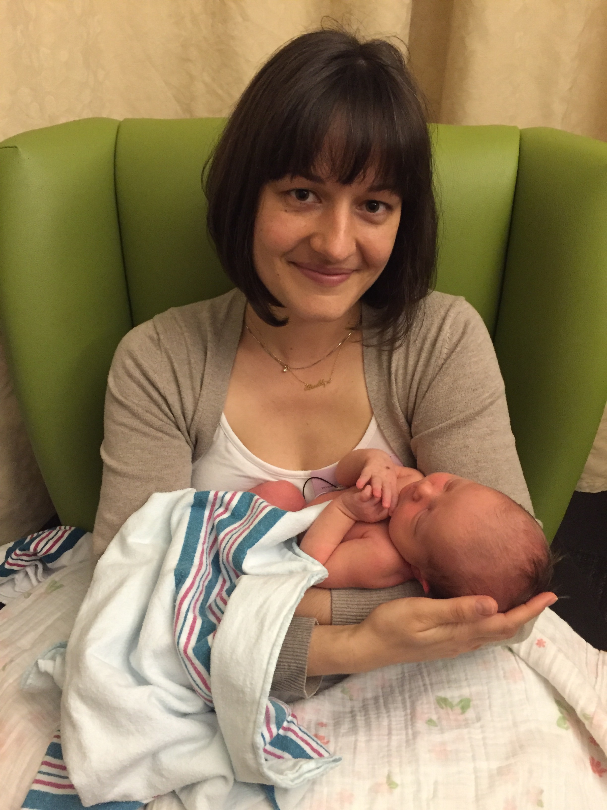 30 minutes passed, an hour… Soon, there was knock on our door and a nurse came in – the nurse from the nursery. She told us she was concerned because Charlotte’s oxygenation levels seemed to fall a few times when she was assessed, indicating a breathing issue. Please God, not again! I told myself that it’s probably nothing and she’d be back with us in our room soon. We went to the nursery and the nurse said I could try to feed her. Under the nurse’s watchful eye, Charlotte again took to the breast with no problem. She seemed strong and her color didn’t change. Still, the pediatrician would need to check her out before they could release her to our room.