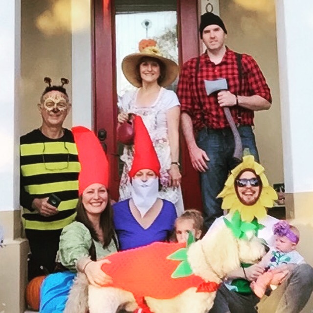 For Halloween, Lizzie was a fairy garden princess – and as such, the rest of the family followed suit as her loyal subjects. Kerry and Ryan flew down for an impromptu visit and we all had a blast. Ker and I were garden gnomes, JR was a lumberjack, my mom was Mary Mary Quite Contrary, my dad was a bumblebee, Baxter was a strawberry, and Charlotte and Ryan were the cutest flowers ever! Enjoy the pics…
