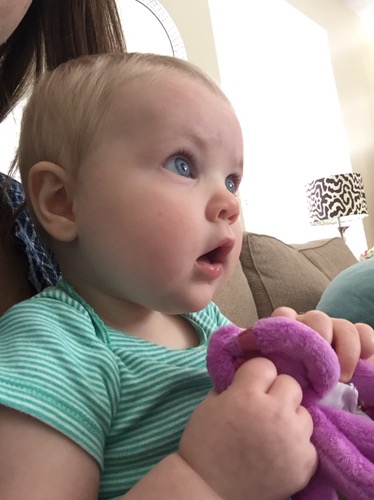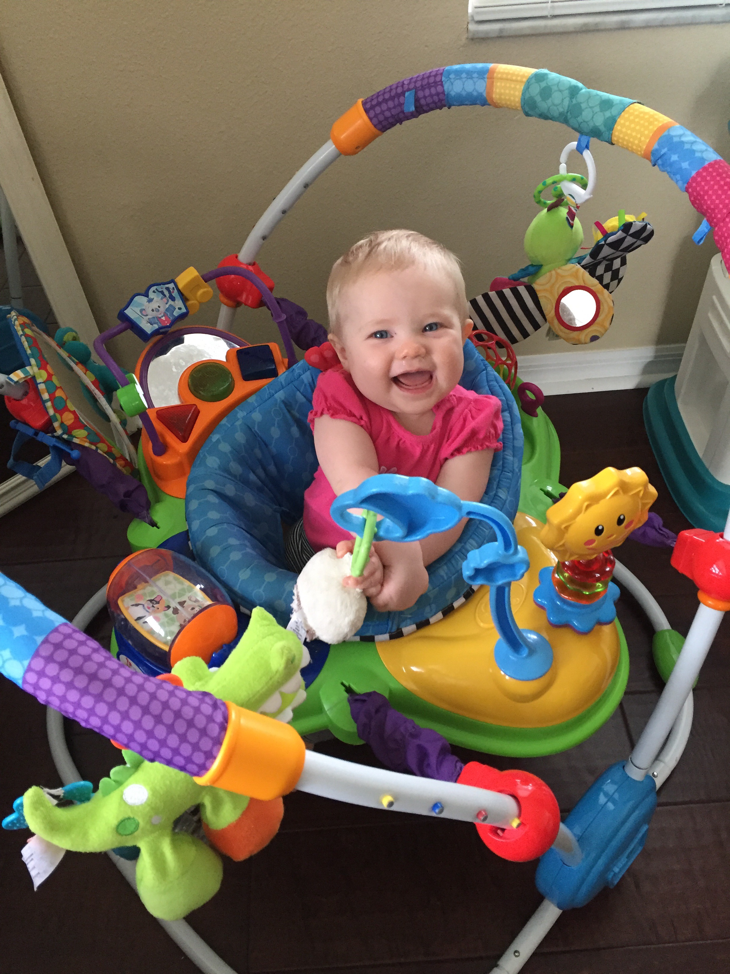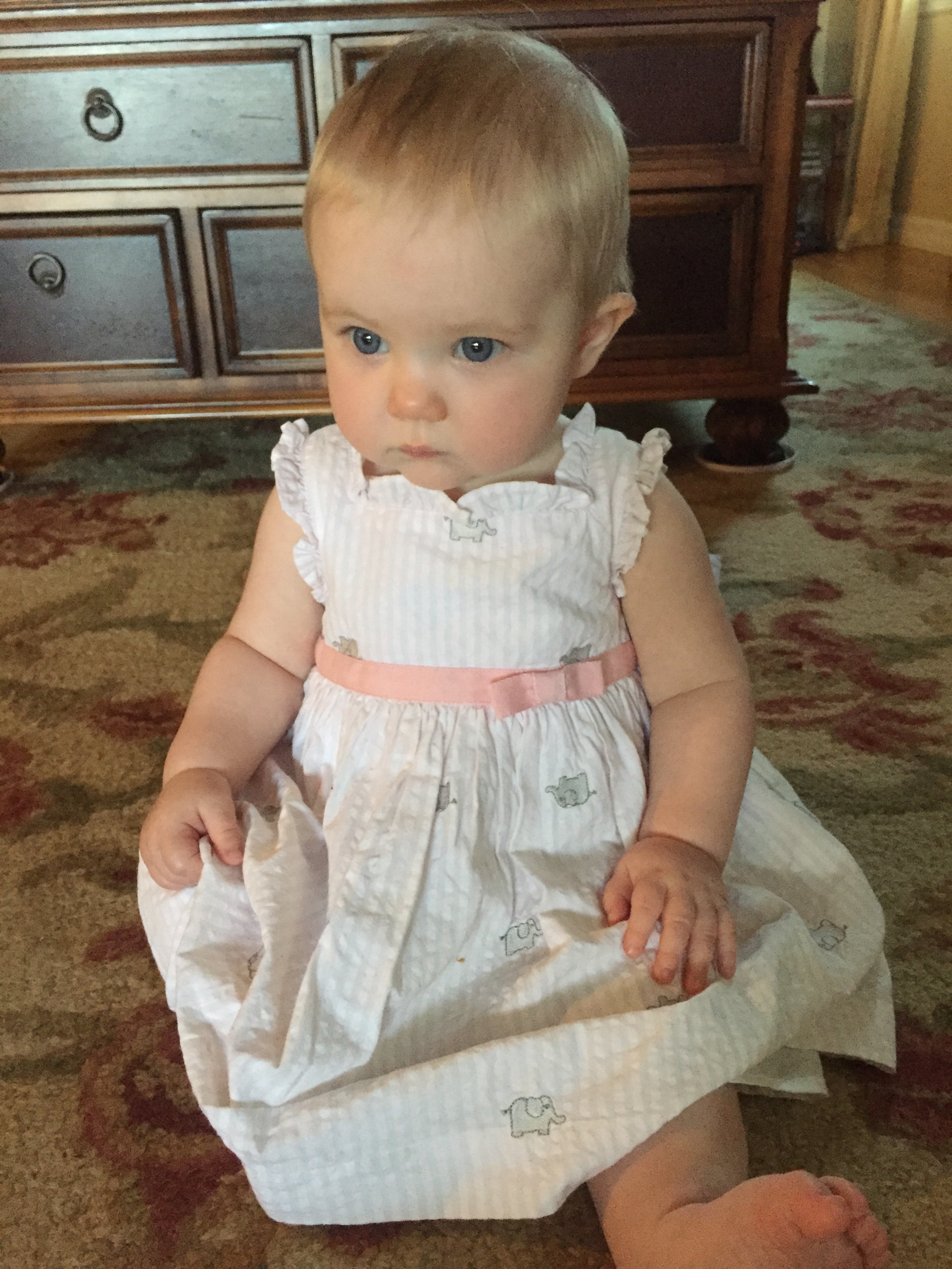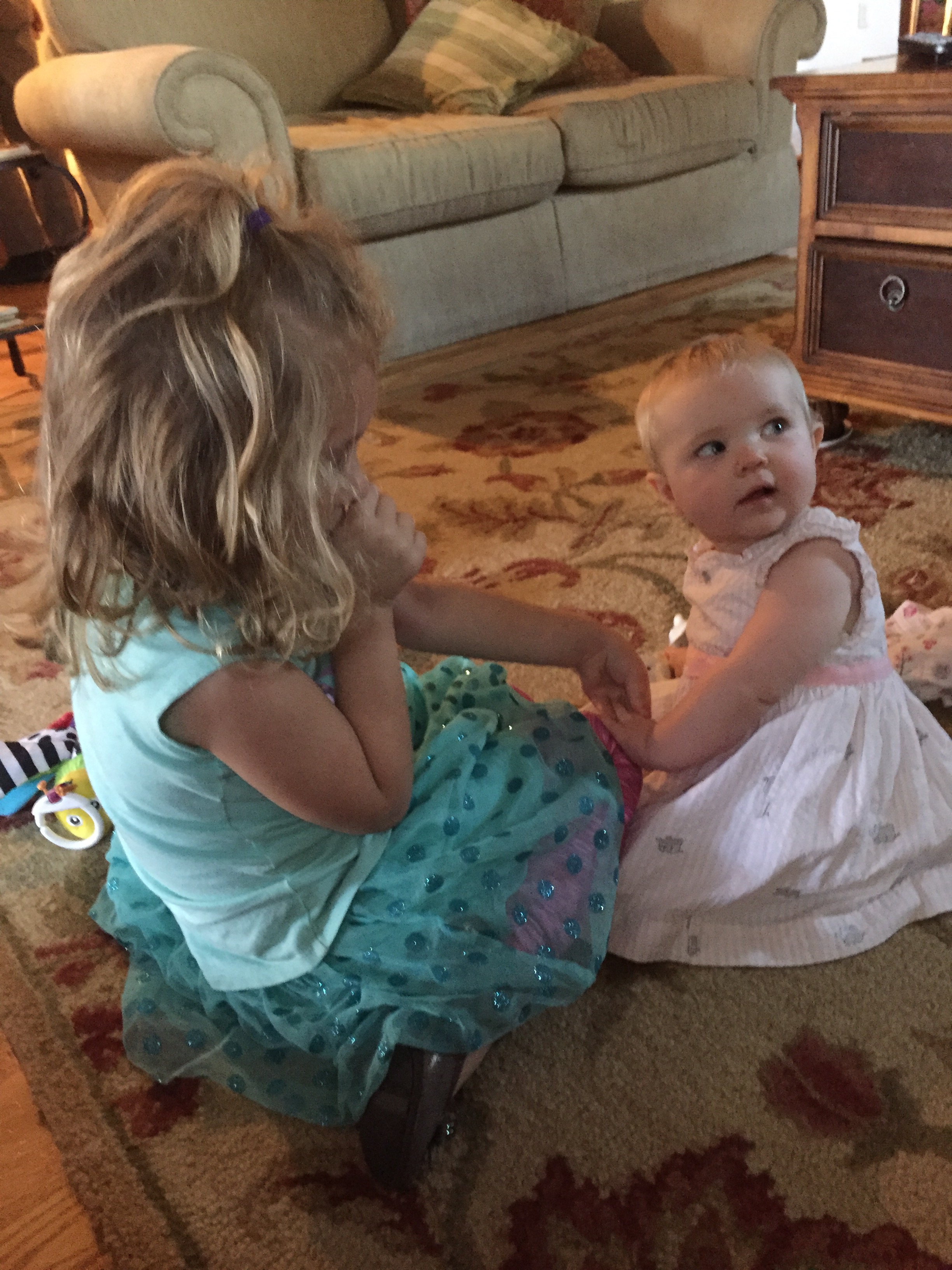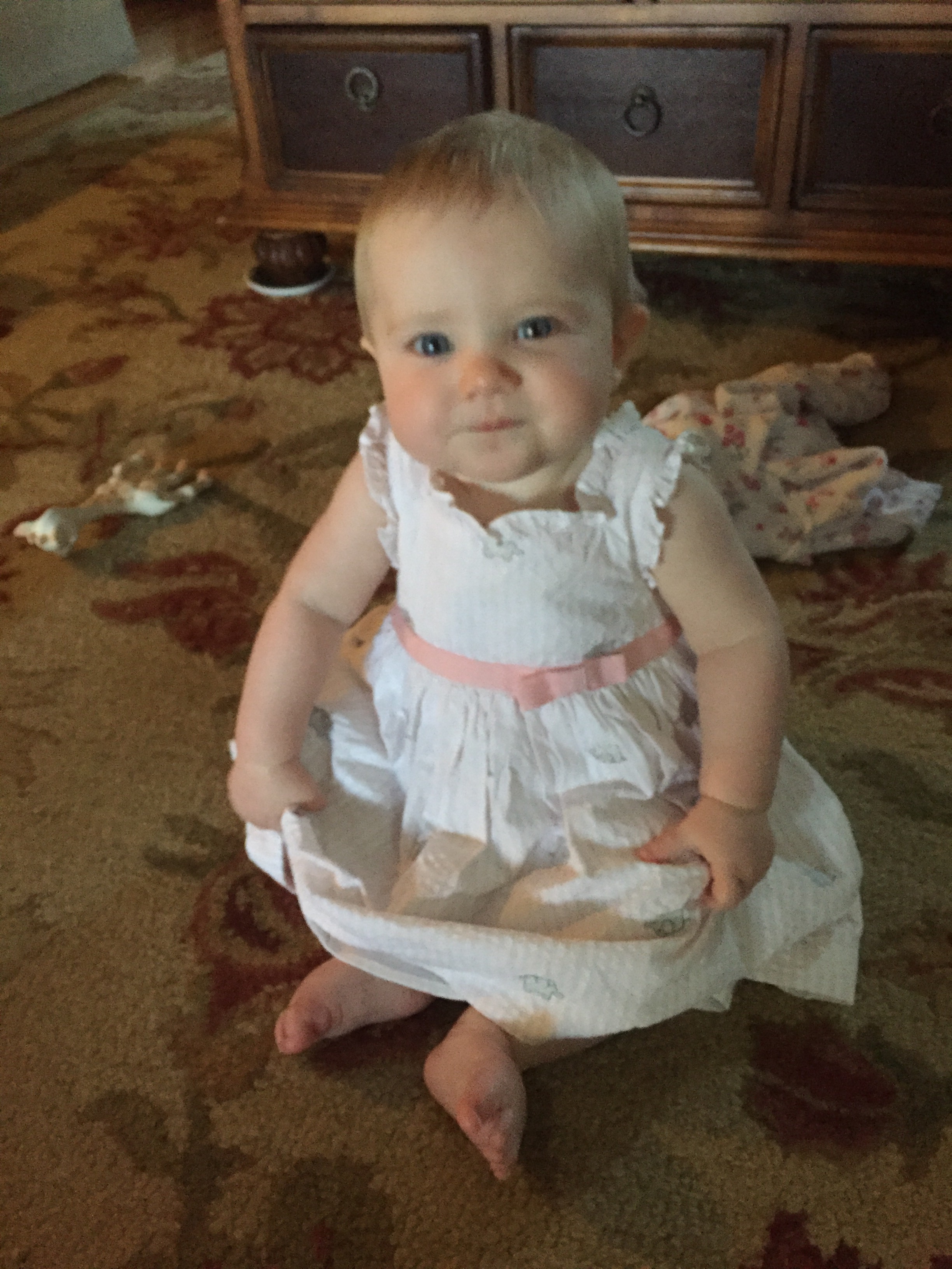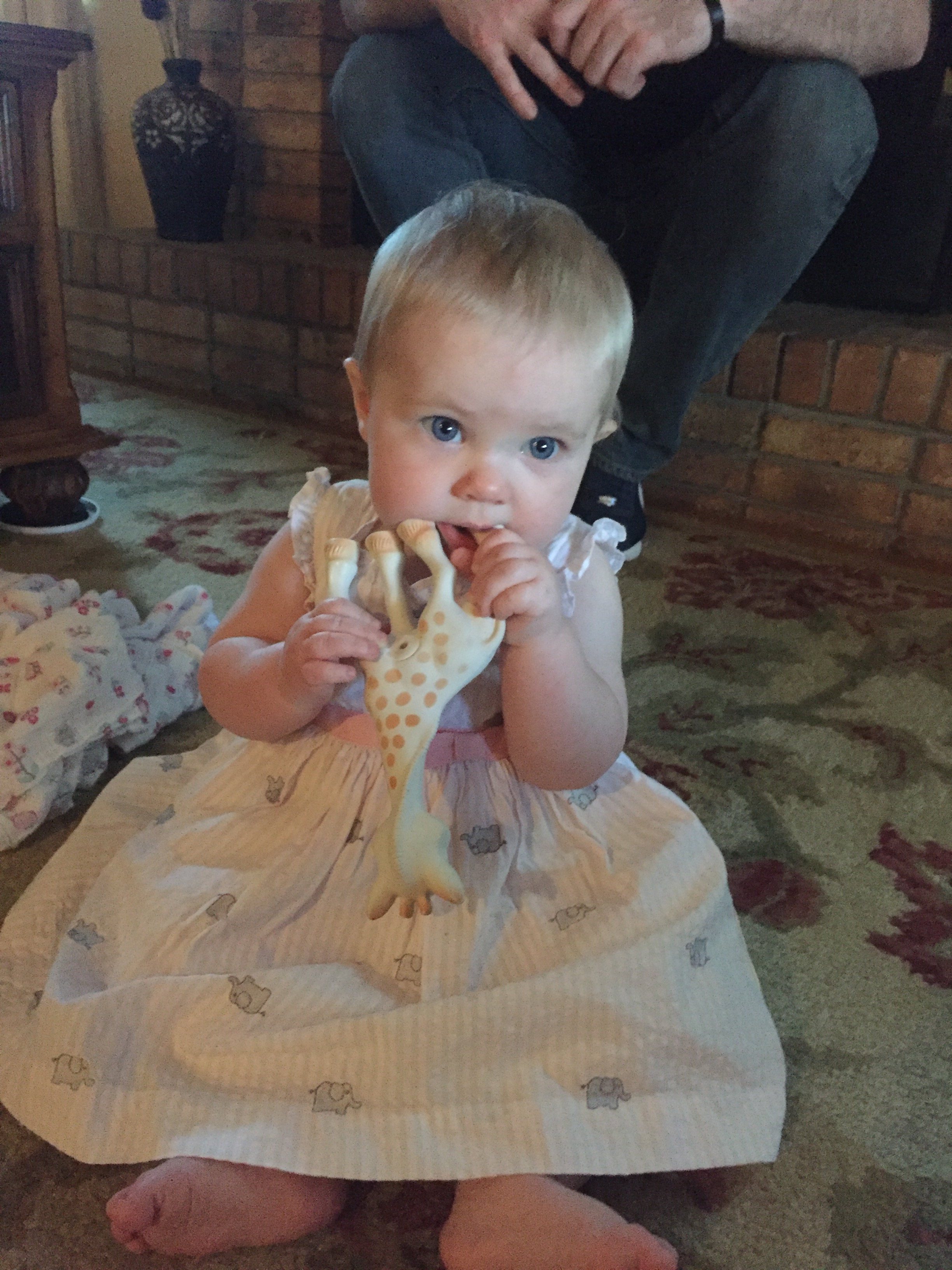 Speaking of her sweet sister, Charlotte is 7 months old now! Not only can she sit up with no problems, she can also get to a sitting position from laying down. It’s pretty cool to watch her do this. She’s roly poly these days and is rarely sitting still for long. I have a feeling crawling will be happening very soon.