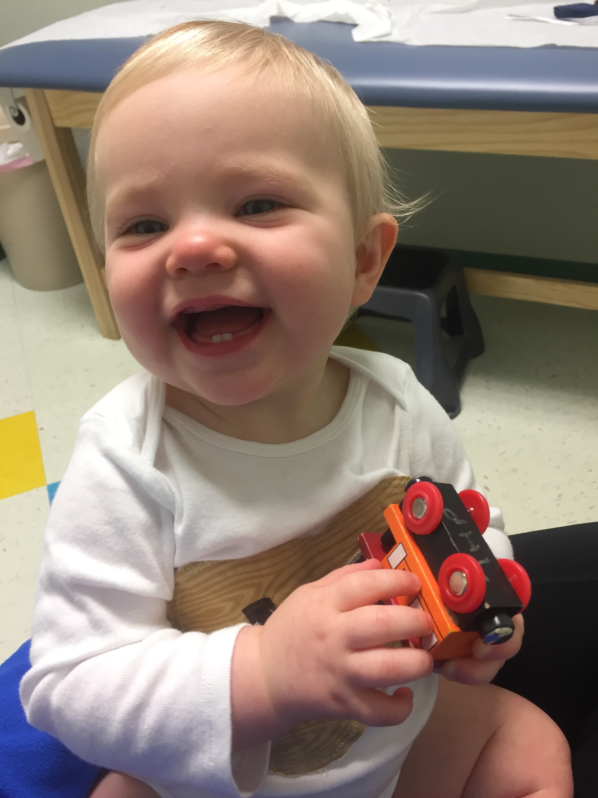 In addition to Char’s bottom two teeth, we’ve had one top front tooth make an appearance, with the other one on its way soon. When we visited the pediatrician at 9 months, she proclaimed that her gums looked “beefy” – meaning many of her teeth looked ready to pop through the gums. I just love Dr. Kathleen’s word choice!