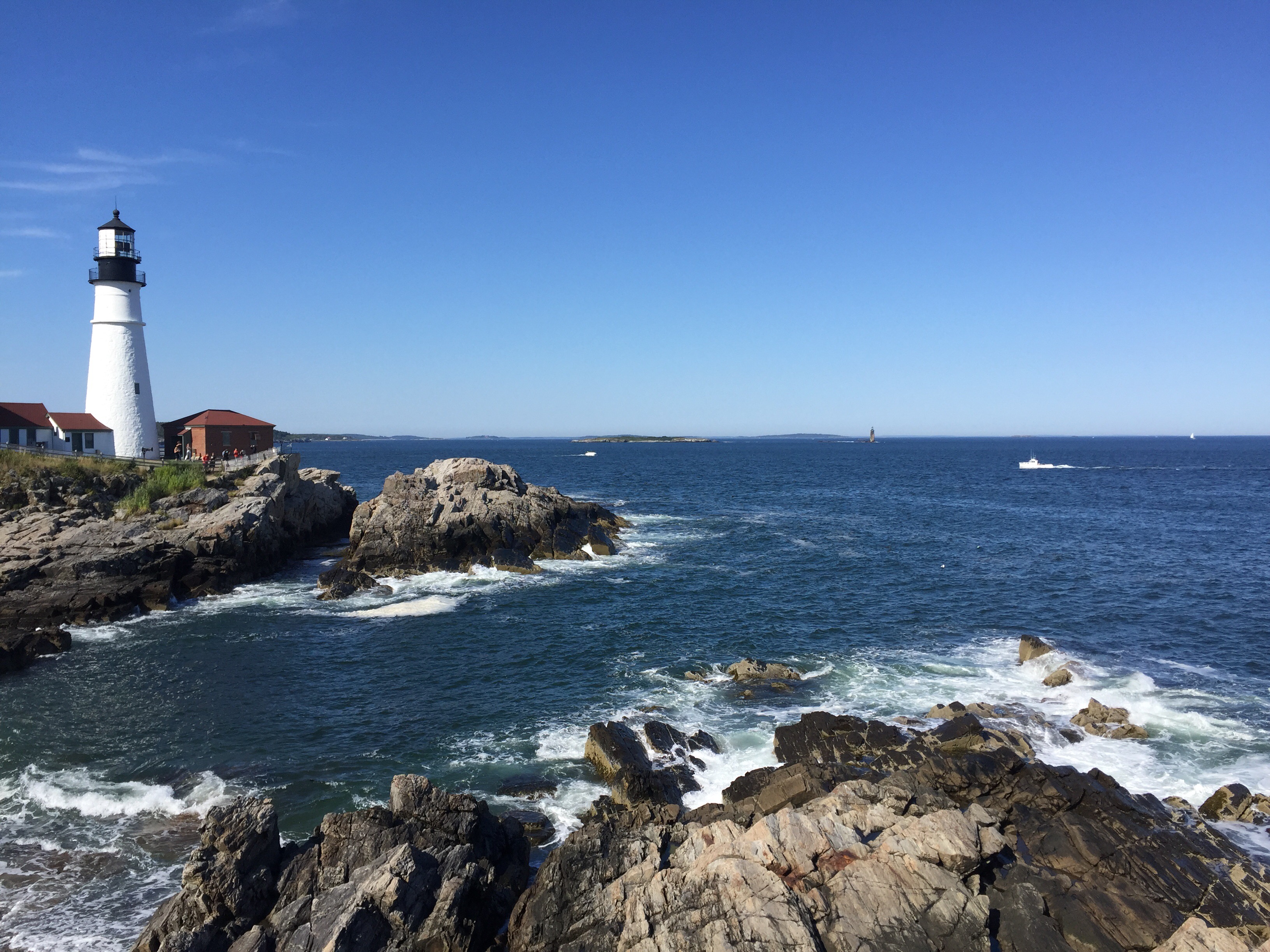 A few hours later, feeling refreshed, we headed to Cape Elizabeth to see the Portland Head Light. The day was perfectly clear, with temps in the 70s and low humidity. The girls enjoyed walking around the lighthouse and taking in the wonderful scenery and weather.