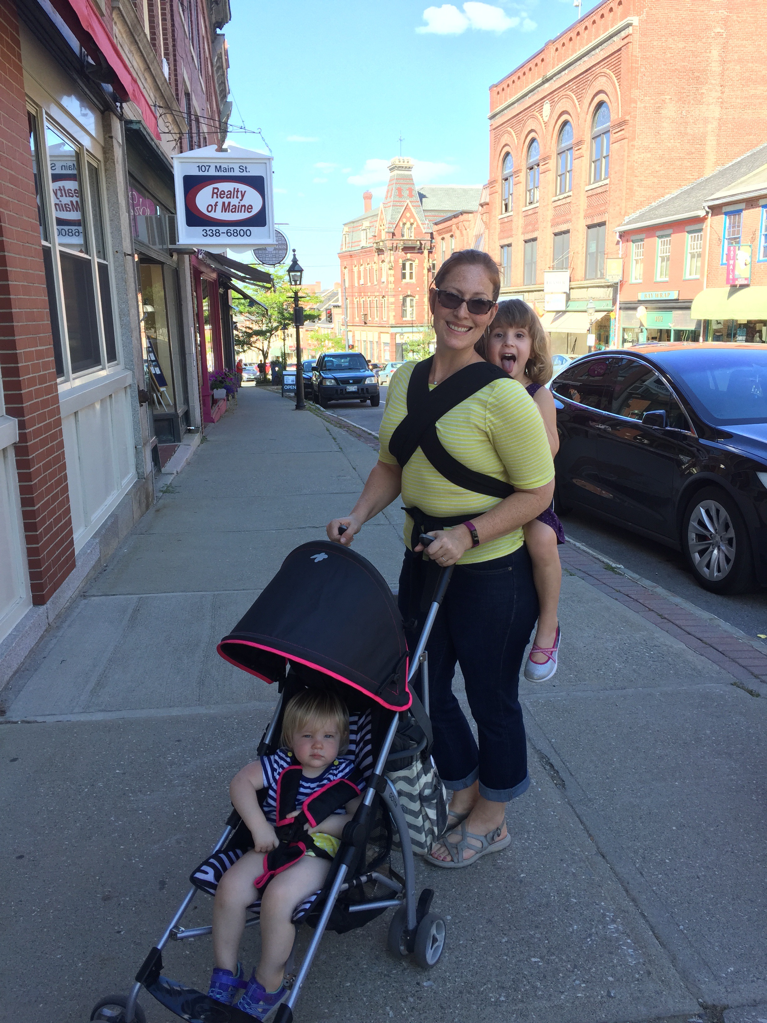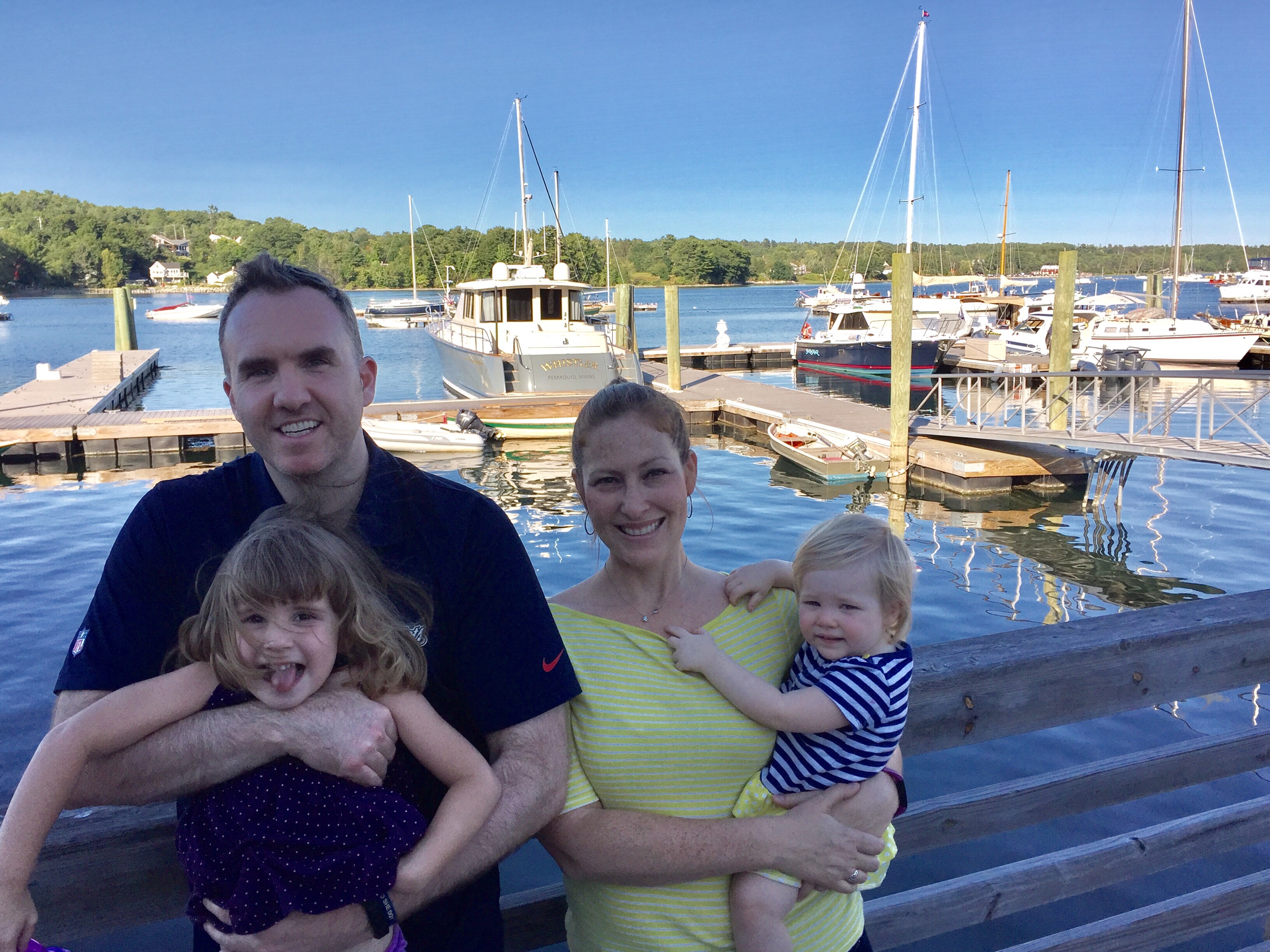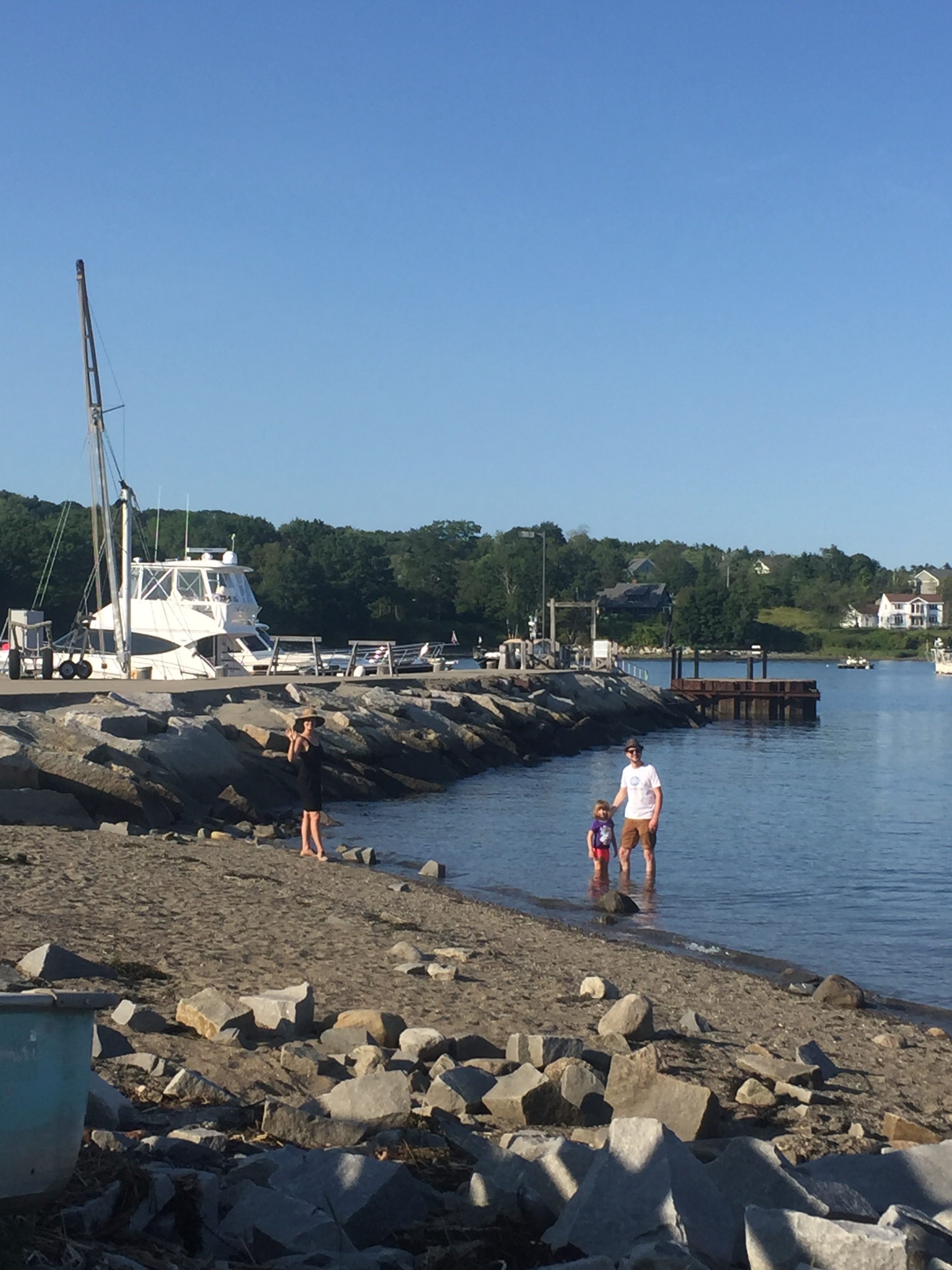 The Parsonage House – our home for the week in BelfastReady for a walk to Main StCarrying Lizzie on my back with the mei tai while Char enjoys a stroller ride around BelfastBelfast’s working harborPedestrian bridge while on the Harbor WalkAuntie and niece duo!Pops and his galSissies!More harbor viewsBelfast’s Main StHanging out on the unique benches in Belfast – made from Lobster trap materialsKerry, Ryan and Lizzie dipping their toes in the cool Maine water…this ended with Lizzie convincing Ryan to splash around with her!A visit to Marshall Wharf Brewing Co. where we sampled some local ales – yum!Never forget your sippy while beer tasting! 😉
