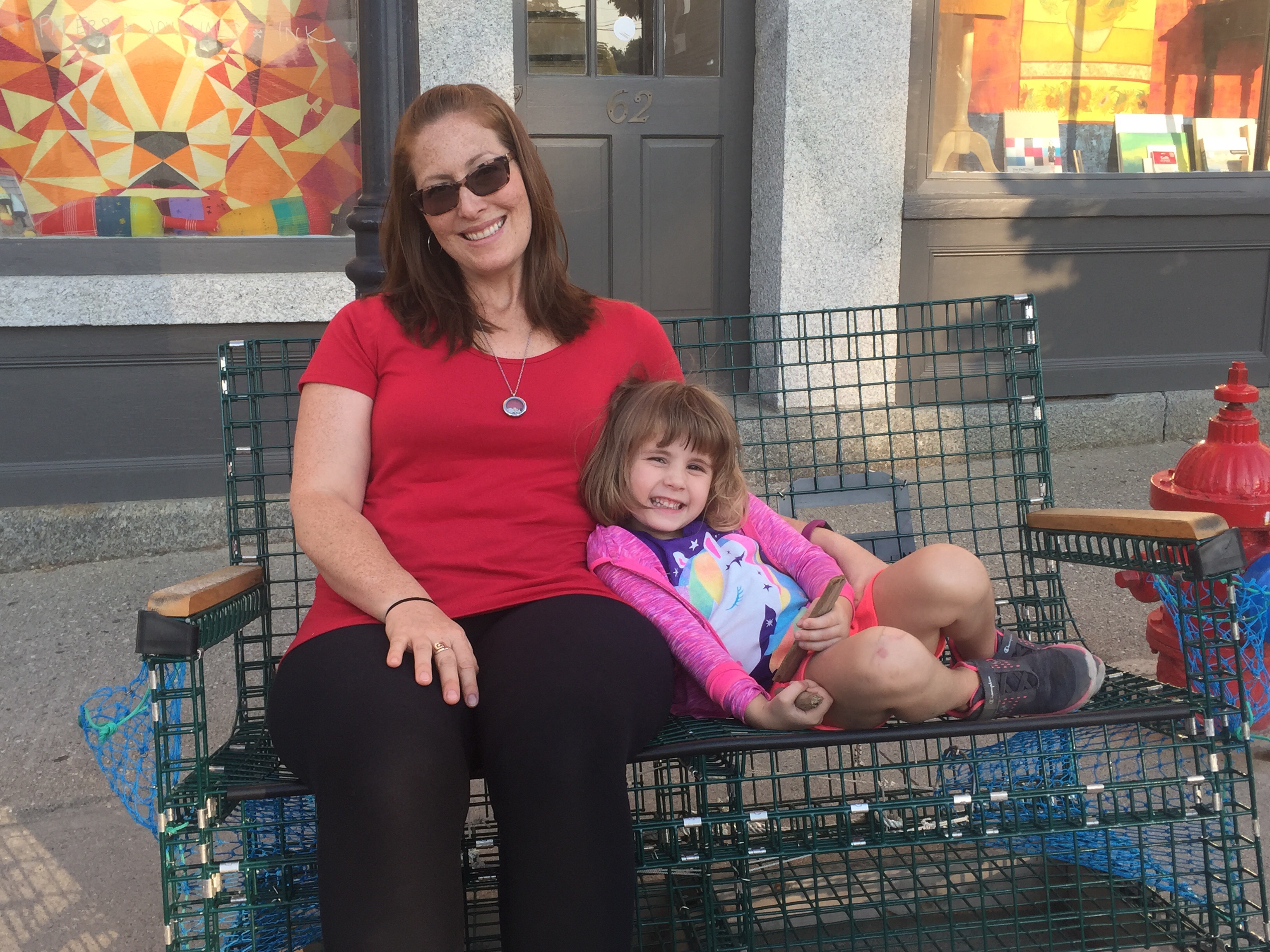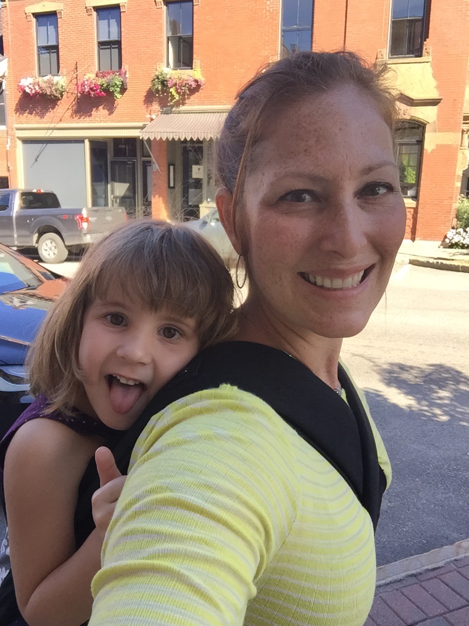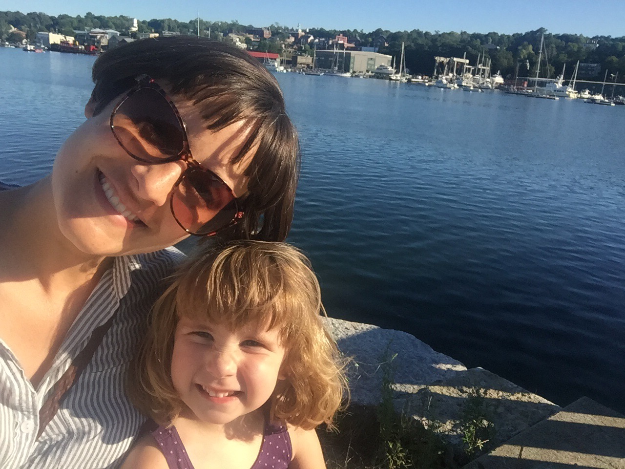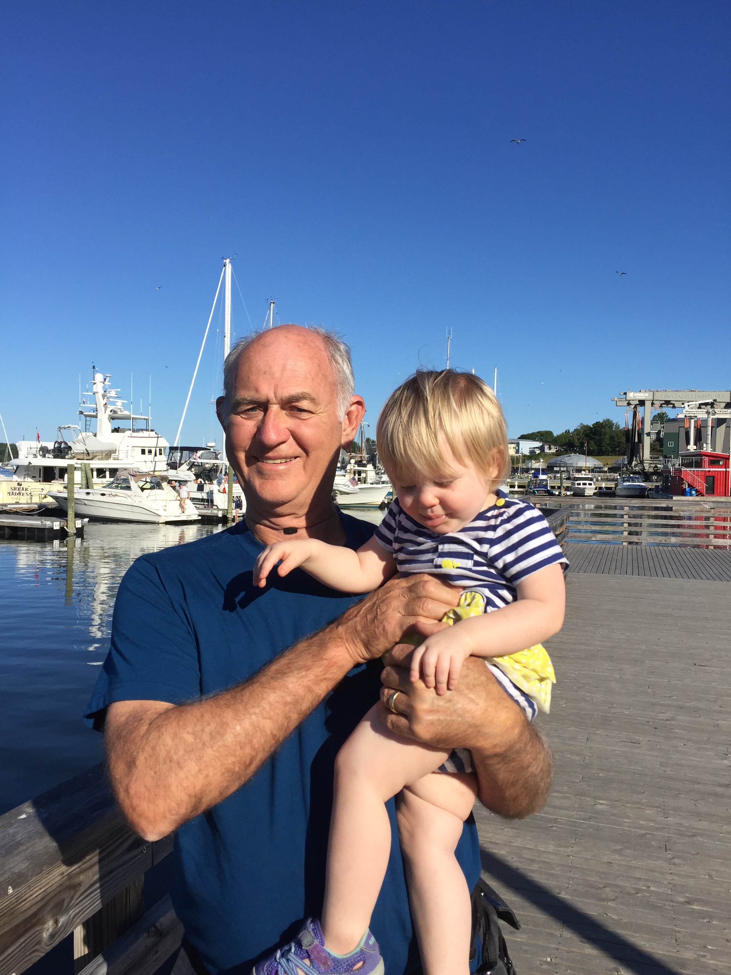 The Parsonage House – our home for the week in BelfastReady for a walk to Main StCarrying Lizzie on my back with the mei tai while Char enjoys a stroller ride around BelfastBelfast’s working harborPedestrian bridge while on the Harbor WalkAuntie and niece duo!Pops and his galSissies!More harbor viewsBelfast’s Main StHanging out on the unique benches in Belfast – made from Lobster trap materialsKerry, Ryan and Lizzie dipping their toes in the cool Maine water…this ended with Lizzie convincing Ryan to splash around with her!A visit to Marshall Wharf Brewing Co. where we sampled some local ales – yum!Never forget your sippy while beer tasting! 😉