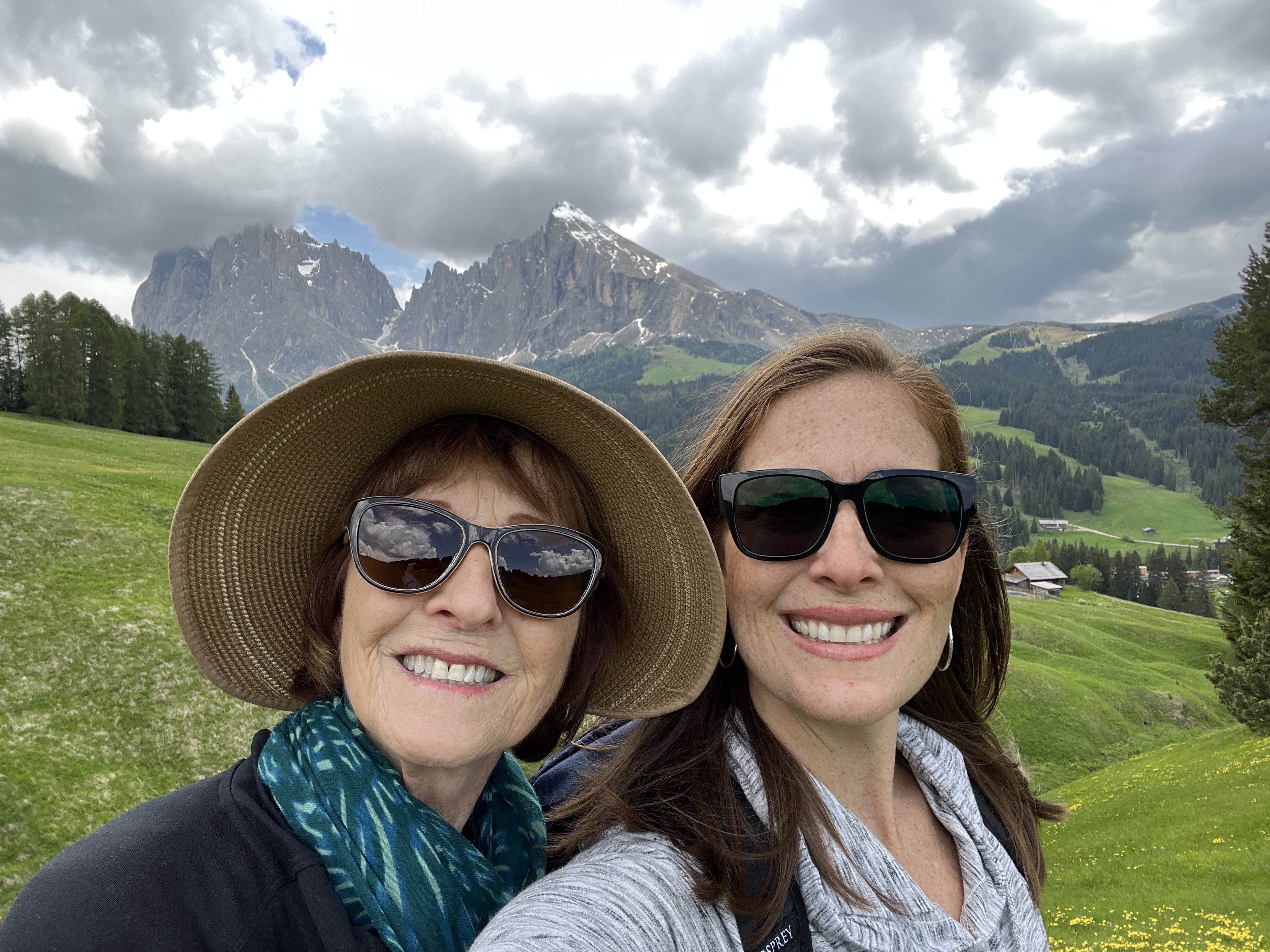 Still, we persisted! Ker and Michael forged ahead so they could make the gondola and possibly see if they would hold it for us (no such luck), while JR, the girls, and my mom, and I steadily hiked the rolling hills of the meadow back to our starting point. We knew there was a good chance we wouldn’t make it back in time, but we pushed forward regardless and talked through the different options we might have to get back down the mountain to Ortisei.