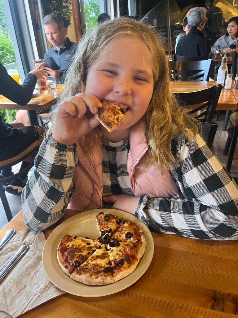 The first night in Canmore, Charlotte, my mom and I took the Policemen’s Creek Trail to meander into town (about a 20 min stroll). Even though the path parallels the main road in and out of town, it felt like we were miles away from anything. We enjoyed a delicious meal at Rocky Mountain Flatbread Company, then headed back to settle in for the night (after a pit stop for some ice cream at the Old School Bus of course!)