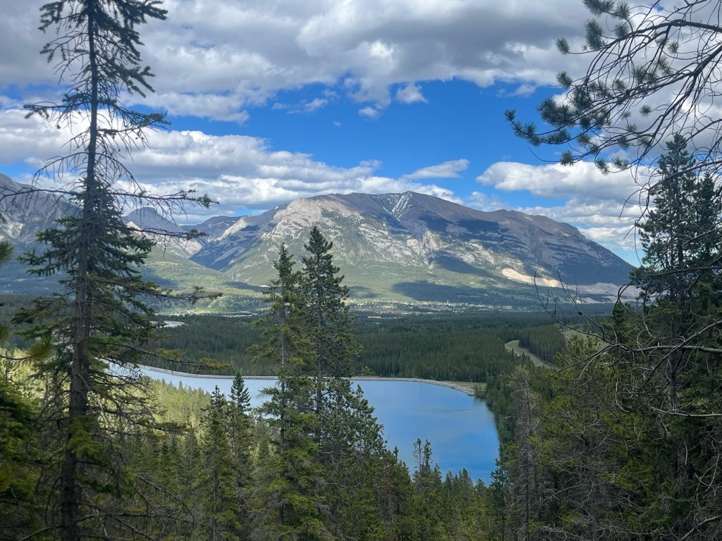 On Monday, we hiked to Grassi Lakes – a 2.1 mile out and back hike just outside of Canmore. This hike begins with peaceful forest views, then rewards you with a beautiful waterfall, and finally with your destination of Grassi Lakes. The lakes have a range of blue, turquoise, and green colors due to the silt from the glaciers that feed it. Highly recommend this trail!
