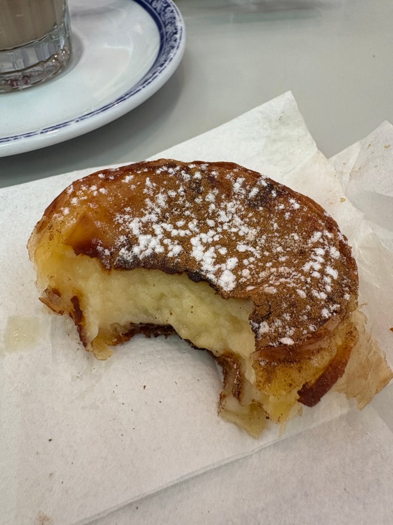 After all that history, we needed a pastry and lunch break! Time to visit Pastéis de Belem – where the tasty little pastel de natas were first created (they call them pastel de belem here). We decided to get table service in the restaurant, ordering pastel de natas for all plus coffees and sandwiches. These pastel de natas were fresh from the oven – warm, crusty and gooey in all the right places. We sprinkled cinnamon and powdered sugar on top – delish!